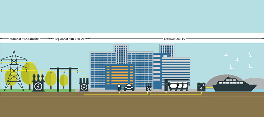 Opinions differ on whether a large-scale electrification of the transport sector will lead to electricity supply problems. Most experts, however, do not see the total demand as a problem. The transport sector’s future demand for electricity is expected to be small in comparison to other sectors, while large energy savings are expected in other parts of the network. However, local bottlenecks in capacity may occur. In Stockholm, problems are mainly evident in the high and medium voltage transmission networks delivering to Stockholm. At the local level (low-voltage network), in Stockholm’s urban areas, it is a large challenge to find physical space for the infrastructure (substations) that will be needed to be built to enhance the distribution network. Other challenges relate to lack of workforce availability and the need to re-route traffic under construction periods for structural enhancements.