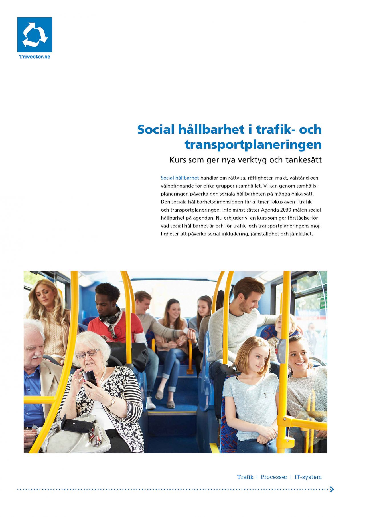 - Får du en grundlig genomgång av den kunskap som finns om social hållbarhet, jämlikhet och jämställdhet, och vad det innebär i ett transportsammanhang.